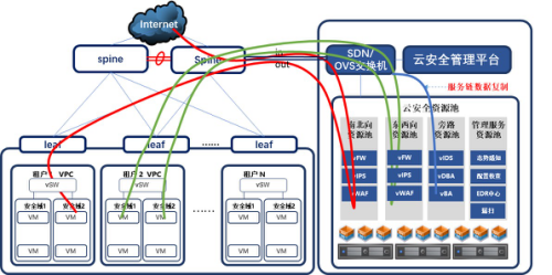 雲安全管理(lǐ)平台通(tōng)過各類安全資源池:₽↓串行(xíng)防護資源池、旁路(lù)檢測資源池、服務管理(lǐ)資源池、硬件(jiàn)資源 ≈≈池,集成各類安全資源,并通(tōng)過安全服務編排,使池化(huà)的(deγλ)安全資源能(néng)夠全面适配雲和(hé)虛拟化(huà)環境。