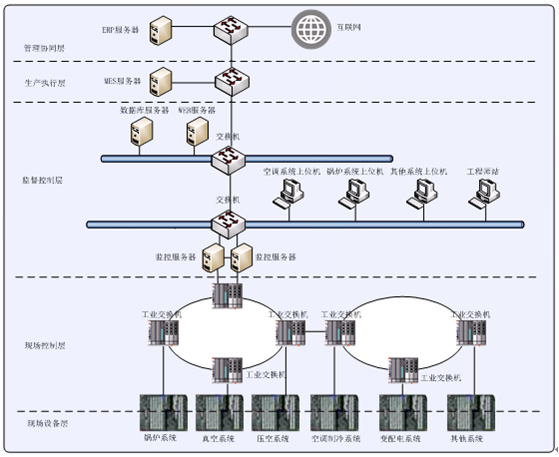 此類工(gōng)控系統網絡可(kě)分(fēn)為♦¶(wèi)監督控制(zhì)層、現(xiàn)場(chǎng)控制(zhì)層、現(x∏♦iàn)場(chǎng)設備層。監督控制(zhì)層網¥ 絡采用(yòng)以太網,用(yòng)于連接各個(gè)子(zǐ)系統監控站(zhàn);現π•≤(xiàn)場(chǎng)控制(zhì)層設備主要(yào)由變配電(diàn)、壓空(•π↑ kōng)、空(kōng)調、鍋爐等獨立子(zǐ)系統組成。動力 "®控制(zhì)類工(gōng)控系統主要(yào)包括各企業(yè)動₹×≠力能(néng)源車(chē)間(jiān)控制(zhì)系統。
