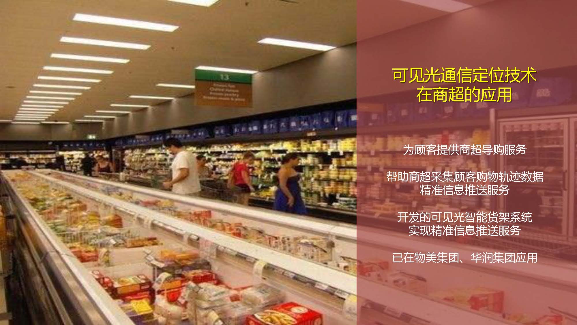 利用(yòng)先進的(de)可(kě)見(jiàn)光(guāng)通(tōng)信技(jì§ )術(shù),讓商超內(nèi)的(de)LED照(zhào)明(míng)燈光(guāng)在 >照(zhào)明(míng)同時(shí)發送精準的(de)定位坐(zuò)标,智能(néng)手<₽>機(jī)利用(yòng)前置攝像頭在經過燈光(guāng)的(de)時(shí)候接收光♦♦ Ω(guāng)波發送的(de)定位坐(zuò)标,配合室內(nèi)地(dì)圖實現(xiàn)σ&精準的(de)室內(nèi)定位功能(néng)。